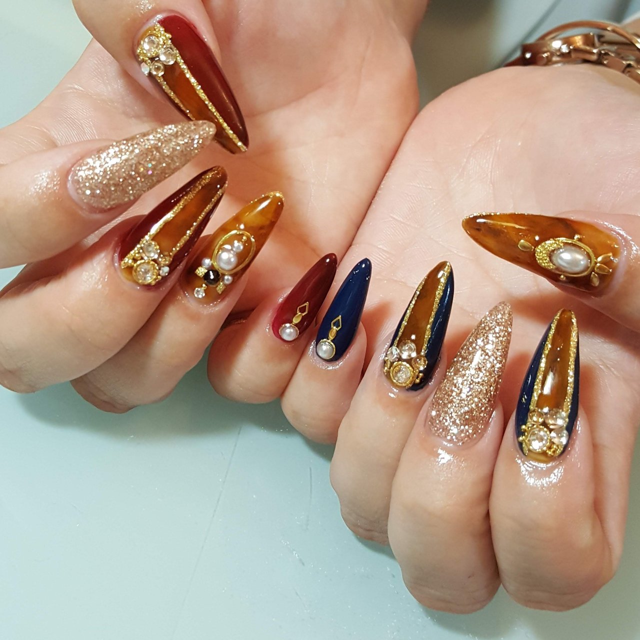 Taka Emi No Twitter New Nail 秋の定番べっ甲ちゃん 差し色にボルドーとネイビー ジェルネイル 大人ネイル ネイルチェンジ ネイルデザイン 秋ネイル キラキラ ストーン べっ甲 べっ甲ネイル 可愛い ネイル好きな人と繋がりたい T Co